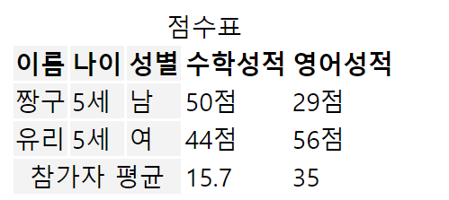 <caption>점수표</caption>