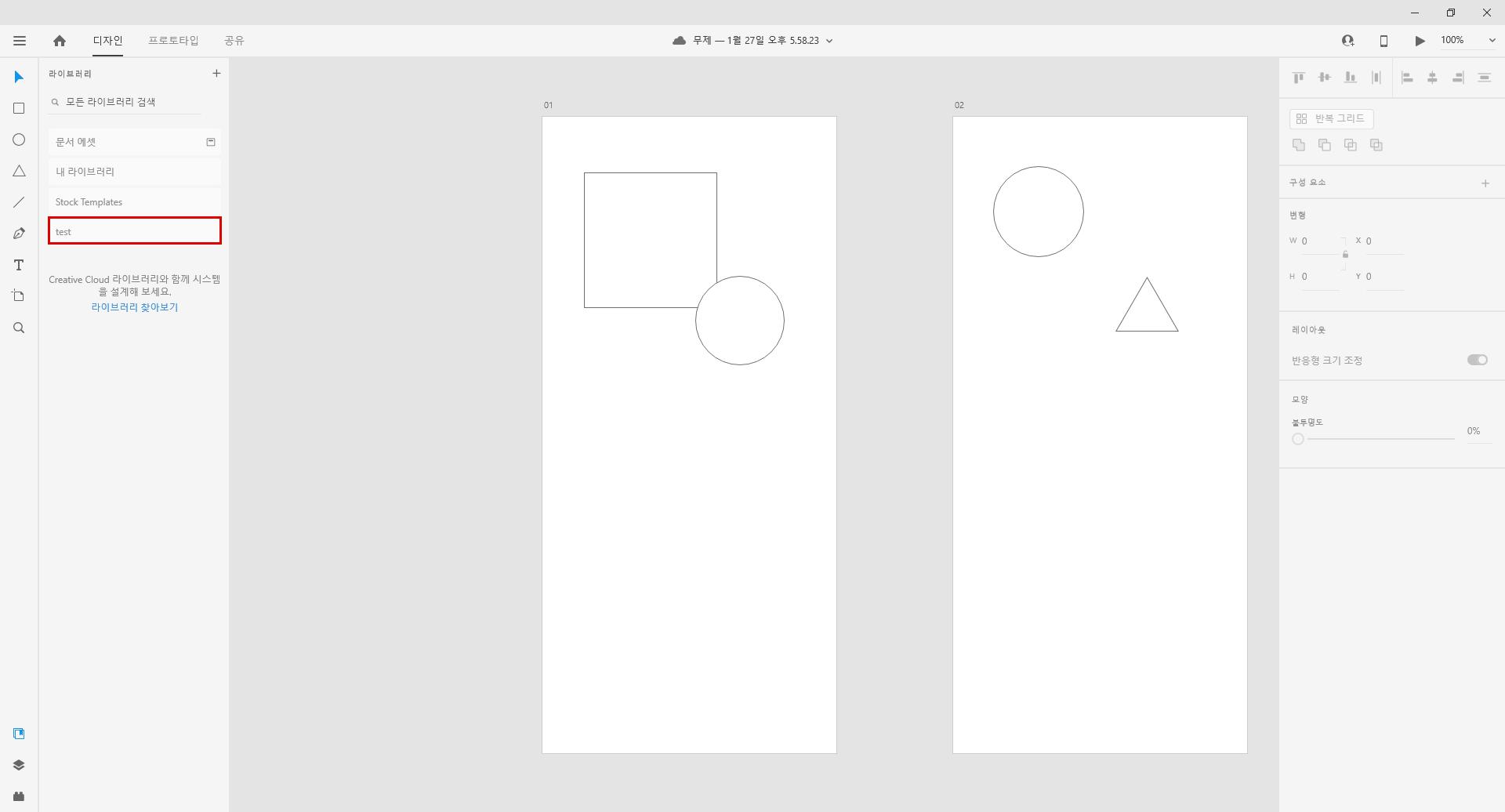 - 'test'라는 라이브러리를 클릭하게 되면 아래와 같이 이전에 저장했던 에셋이 그대로 나온다