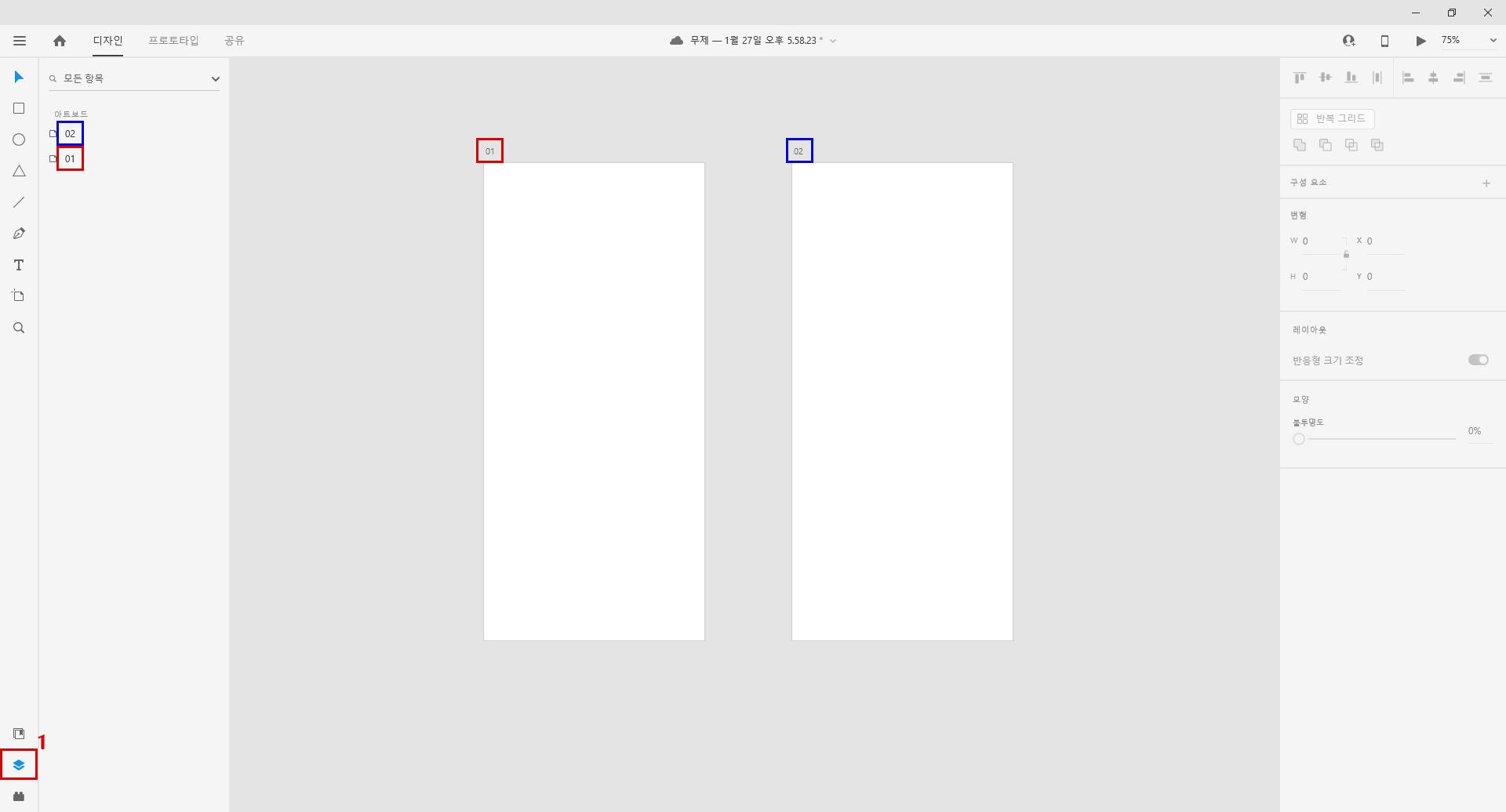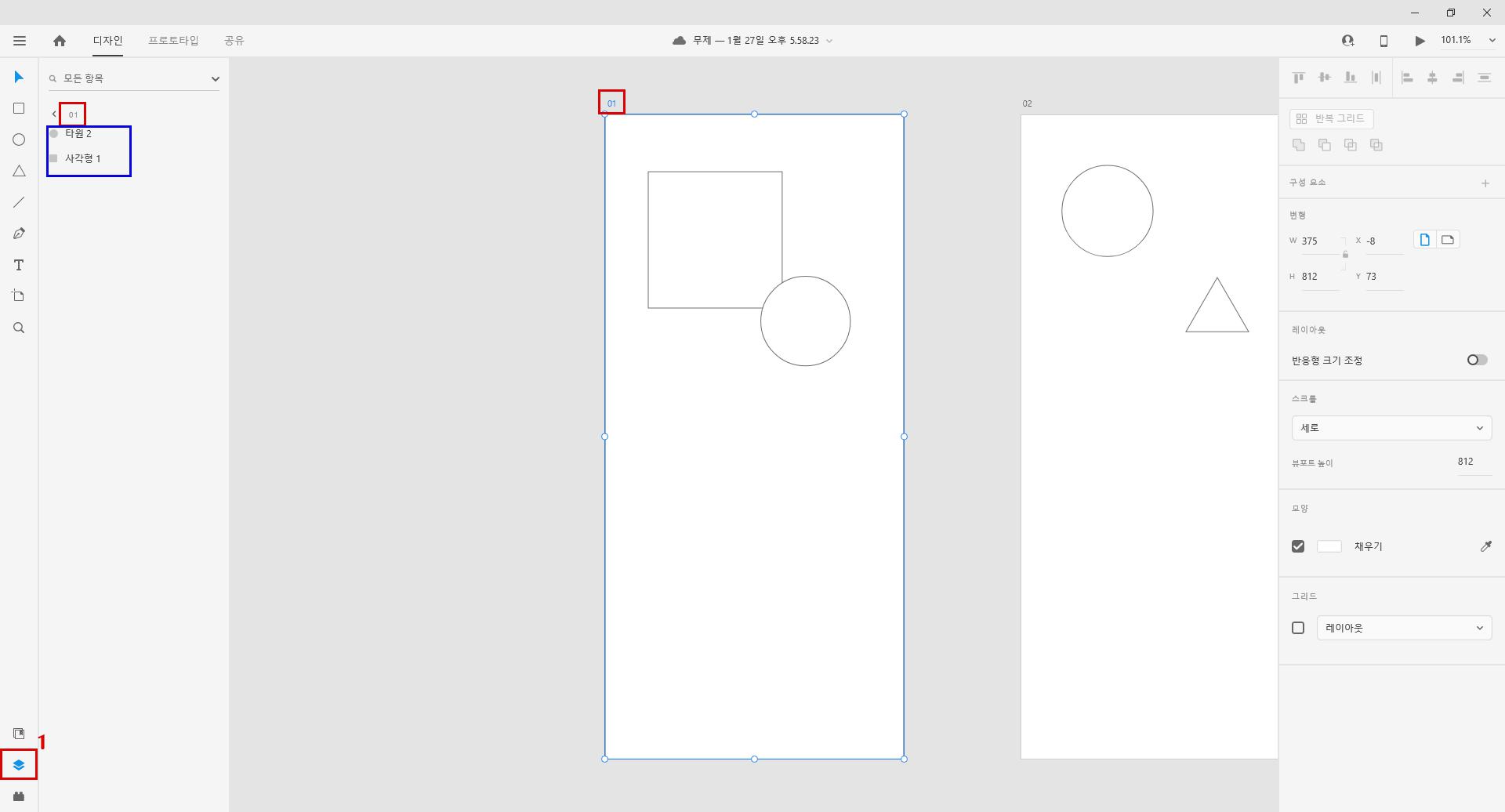 - 레이어를 클릭하게 되면 아트보드의 이름과 같은 레이어가 있는 것을 확인할 수 있다.