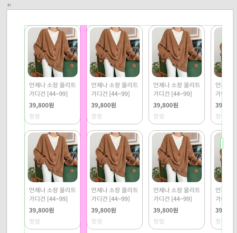 3. 요소 사이에 마우스를 올리면 핑크색으로 되면서 전체적인 여백을 조절 가능하다