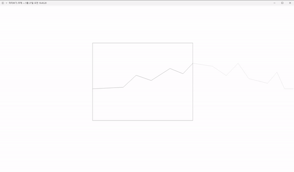 저는 보기 쉬우라고 첫 번째 방법인 흰 상자로 덮어주고 투명도를 주어서 차트가 움직이는 걸 보여드릴게요